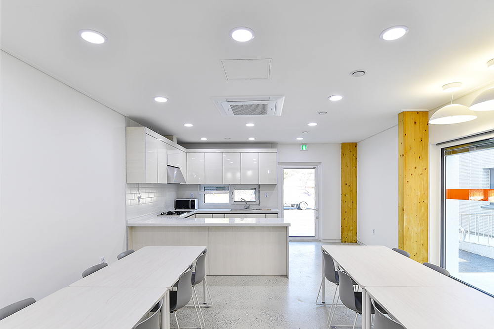 빛과 바람과 단열, 환기 등 쾌적한 공간을 만들기 위해 열교를 극복하고 우수한 단열성능 자재 특히, 셀룰로오즈 단열재를 지붕에 적용해보기도 하고 기밀시공 등 다양한 패시브적인 요소가 설계와 시공에 반영되었다. 제로에너지 인증을 충족하기 위해 주차장의 지붕과 후면 매스의 지붕에 태양광패널을 설치하는 등 액티브적인 요소까지 추가되어 기능적으로 매우 우수한 건물이 되었다. 이렇듯 복합적인 기술을 도입하면서 디자인 등 고려할 부분이 많았지만 목재를 적절히 활용하면서 미적인 부분을 담아내려 노력하였다.