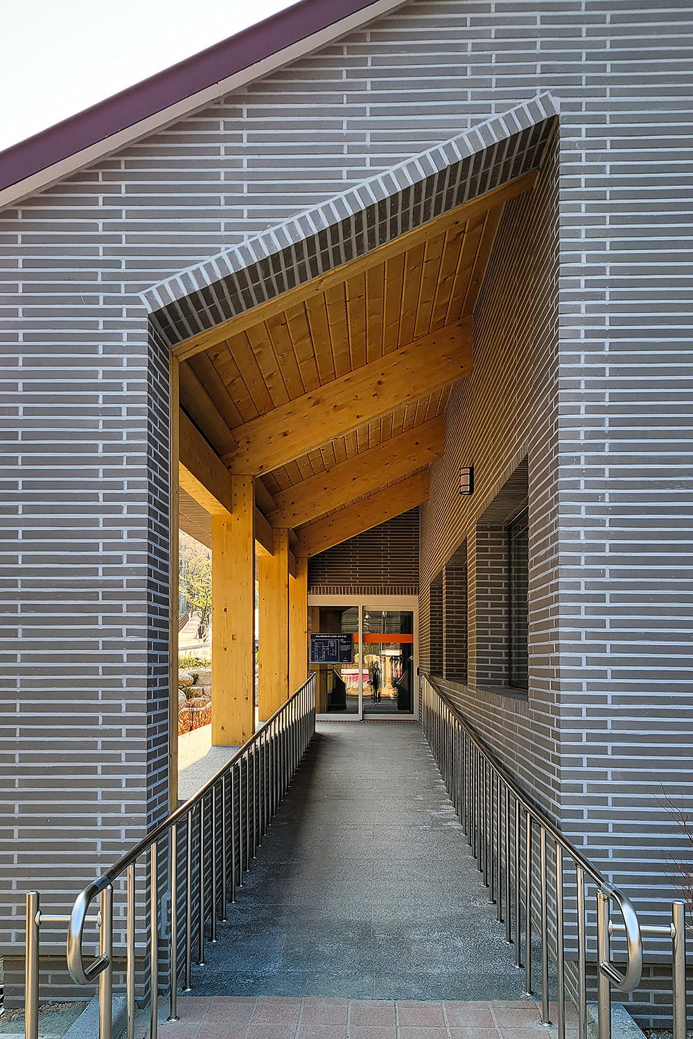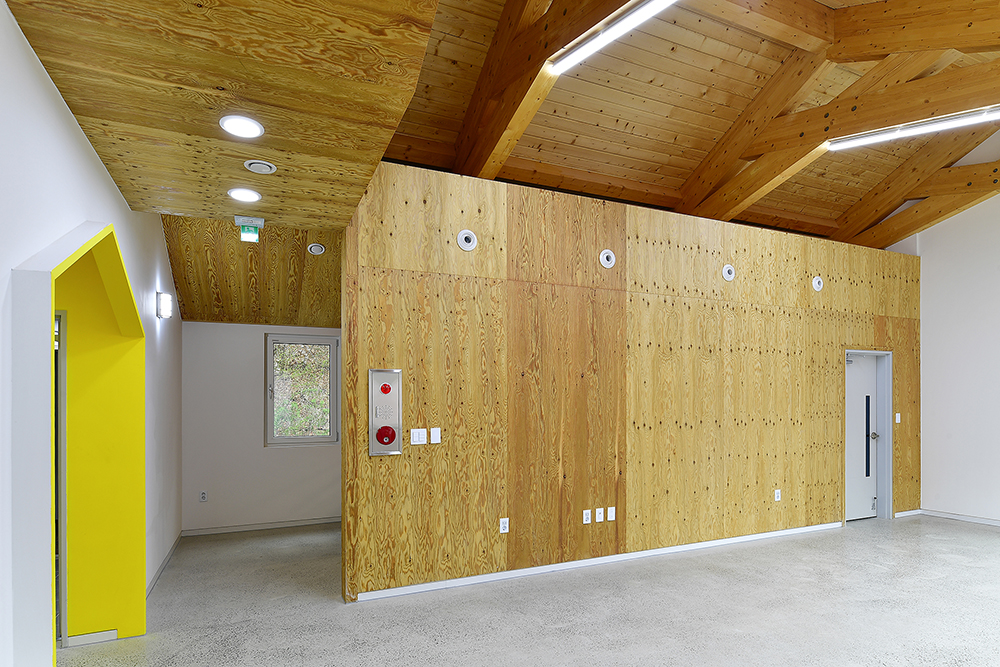 설계 초기단계에서는 패시브건축물이 아니었다. 설계가 어느 정도 진행될 무렵 패시브협회의 지원 프로젝트로 선정이 되었다는 발주처의 낭보를 전해 들었다. 설계자 입장에서는 거의 전면적으로 수정해야 하는 상황이었지만 오히려 기쁜 일이 아니던가? 중목구조 도입으로 일부 상승된 공사비 부담이 패시브건축물 지원으로 조금은 덜어질 테고 건물도 우수한 성능으로 업그레이드될 것이며, 전작에선 패시브 인증을 받지 못한 저에너지 주택설계의 경험을 토대로 제대로 된 패시브 건축설계를 경험할 수 있기 때문이었다. 일반 건축물과 성능이 향상된 패시브건축물을 비교해가며 설계단계부터 고려할 사항을 면밀히 반영하였으며 패시브협회의 검토와 수정을 단계적으로 거쳤다. 이 과정에서 BF인증 부분과 일부 상충되는 부분도 해결해야 했다. 각종 인증 대상 건축물은 디자인뿐만 아니라 이렇듯 풀어야 할 숙제도 많고 그 진행과정 또한 매우 더디다. 이런 지난한 과정에서 설계자는 지치기 마련이다. 나 역시 마찬가지였지만 완공의 그날을 상상하며 잘 견뎌 온 듯하다.