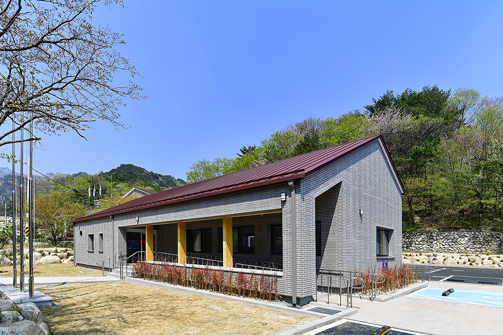 이렇듯 오색분소를 수식하는 용어는 다양하다. 다르게 말하면 그만큼 설계과정이 쉽지 않음을 의미하는 것이다. 대부분의 공공건축물은 건축물 에너지 효율등급이나 제로에너지인증 그리고 BF인증은 필수로 적용해야 한다. 거기에 더해 설계 중간에 패시브협회의 지원대상 건축물로 선정되어 공공건축물로서 패시브 인증이 추가되었고 구조도 국립공원사무소 최초로 중목구조를 설계에 적용하는 등 여러가지 복합적인 사항이 고려되어야 했다. 완공된 이 시점에서 다소 아쉬운 점은 있으나, 고생한 시간과 더불어 뿌듯한 마음이 든다. 화려한 수식어만큼 건물이 화려하진 않고 수수하게 자리한 모습이지만 이 또한 담담히 자연에 스미는 것 같아 위로를 삼는다.