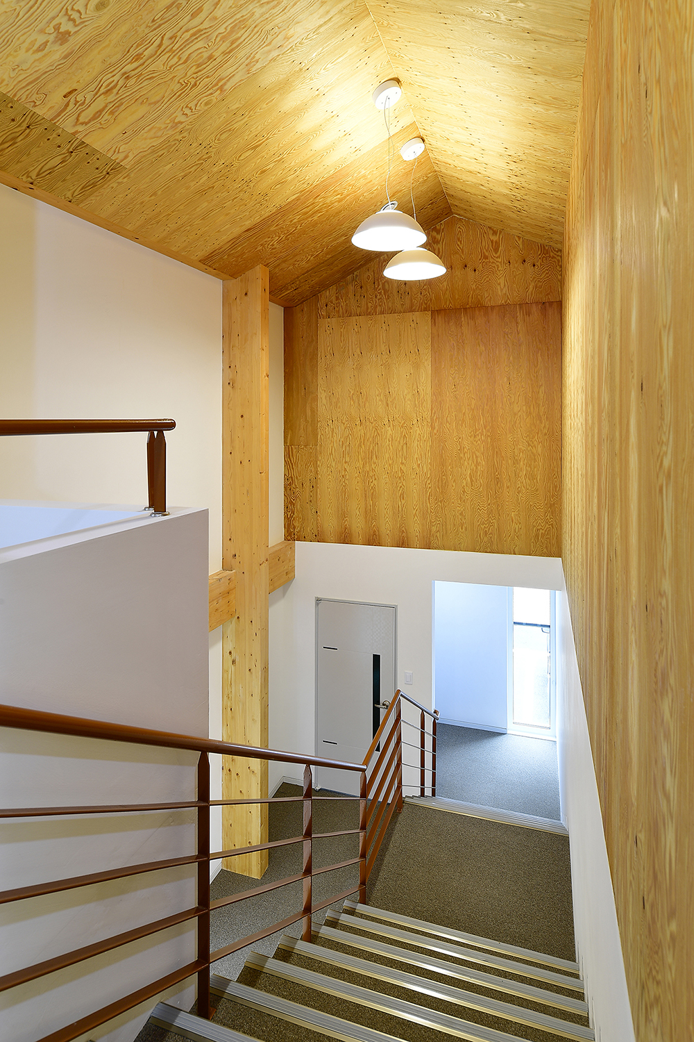 내부 마감에도 일부 벽체에 나무 각재를 격자로 돌출시키는 등 중목구조와의 시너지를 고려하였다. 백색의 벽체에 나무의 따뜻함과 고유의 질감이 더해지니 다소 딱딱할 수 있는 업무공간이 한층 산뜻해졌다.