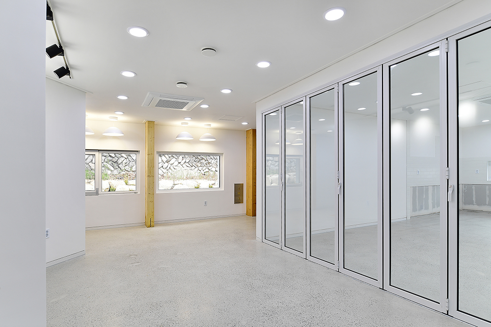 설계 초기단계에서는 패시브건축물이 아니었다. 설계가 어느 정도 진행될 무렵 패시브협회의 지원 프로젝트로 선정이 되었다는 발주처의 낭보를 전해 들었다. 설계자 입장에서는 거의 전면적으로 수정해야 하는 상황이었지만 오히려 기쁜 일이 아니던가? 중목구조 도입으로 일부 상승된 공사비 부담이 패시브건축물 지원으로 조금은 덜어질 테고 건물도 우수한 성능으로 업그레이드될 것이며, 전작에선 패시브 인증을 받지 못한 저에너지 주택설계의 경험을 토대로 제대로 된 패시브 건축설계를 경험할 수 있기 때문이었다. 일반 건축물과 성능이 향상된 패시브건축물을 비교해가며 설계단계부터 고려할 사항을 면밀히 반영하였으며 패시브협회의 검토와 수정을 단계적으로 거쳤다. 이 과정에서 BF인증 부분과 일부 상충되는 부분도 해결해야 했다. 각종 인증 대상 건축물은 디자인뿐만 아니라 이렇듯 풀어야 할 숙제도 많고 그 진행과정 또한 매우 더디다. 이런 지난한 과정에서 설계자는 지치기 마련이다. 나 역시 마찬가지였지만 완공의 그날을 상상하며 잘 견뎌 온 듯하다.